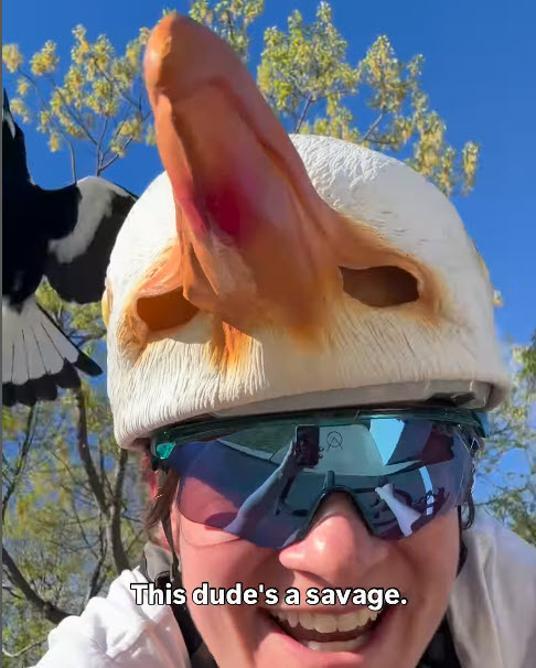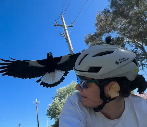 “I actually think magpies are lovely birds — don’t get me wrong — but during spring it’s pretty much impossible to avoid getting swooped if you’re a cyclist,” she says.